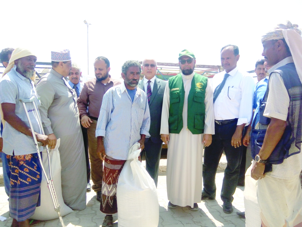 وزع مركز الملك سلمان للإغاثة والأعمال الإنسانية اخيرا بالعاصمة المؤقتة عدن وبتنفيذ من قبل مؤسسة نهد التنموية ألفي كيس من مادة القمح للنازحين من الساحل الغربي بمحافظة الحديدة الذين نزحوا بسبب الحرب الظالمة التي شنتها مليشيات الحوثي الانقلابية المدعومة من إيران(حسب ما ذكرت صحيفة المدينة).