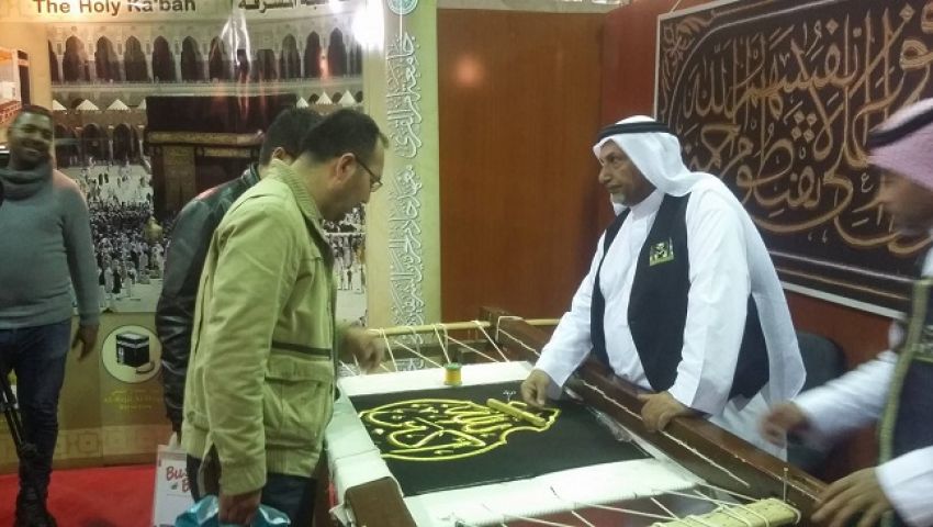 جذبت كسوة الكعبة آلاف الزائرين على جناح المملكة العربية السعودية المشارك في معرض القاهرة الدولي للكتاب في نسخته التاسعة والأربعين، من أجل مشاهدة حياكة ونسج الكعبة المشرفة.