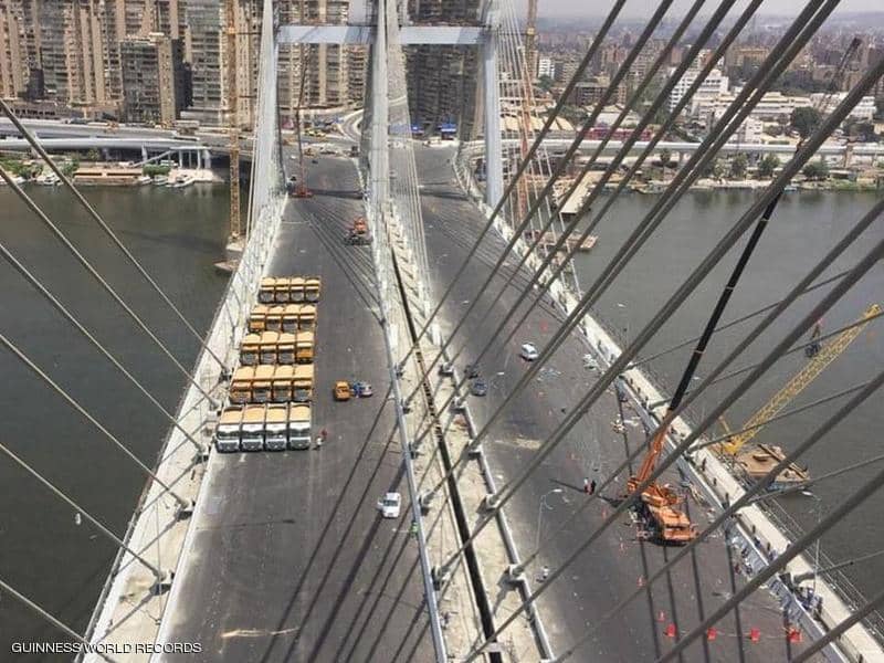 وقالت "غينيس" على صفحتها الرسمية بموقع "فيسبوك"، إن الجسر المعلق الضخم يمر فوق نهر النيل بالقاهرة، ويسير في اتجاهين بكل منهما 6 حارات مرورية، ويهدف إلى تقليل الاختناق المروري في العاصمة.