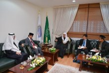 رؤوساء تحرير كبرى الصحف الأندونيسية يلتقون معالي الأمين العام الشيخ الدكتور محمد بن عبدالكريم العيسى في مكتبه بالرياض أخيراً، في حوار شامل تناول عدداً من الموضوعات ذات الاهتمام المشترك.