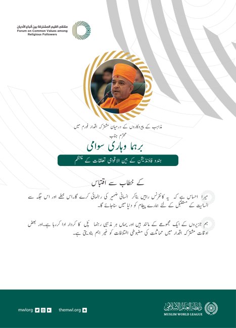 محترم جناب برہمہ وہاری سوامی، ہندو فاؤنڈیشن کے بین الاقوامی تعلقات کے منتظم کے مشترکہ اقدار فورم ریاض میں خطاب سے اقتباس: