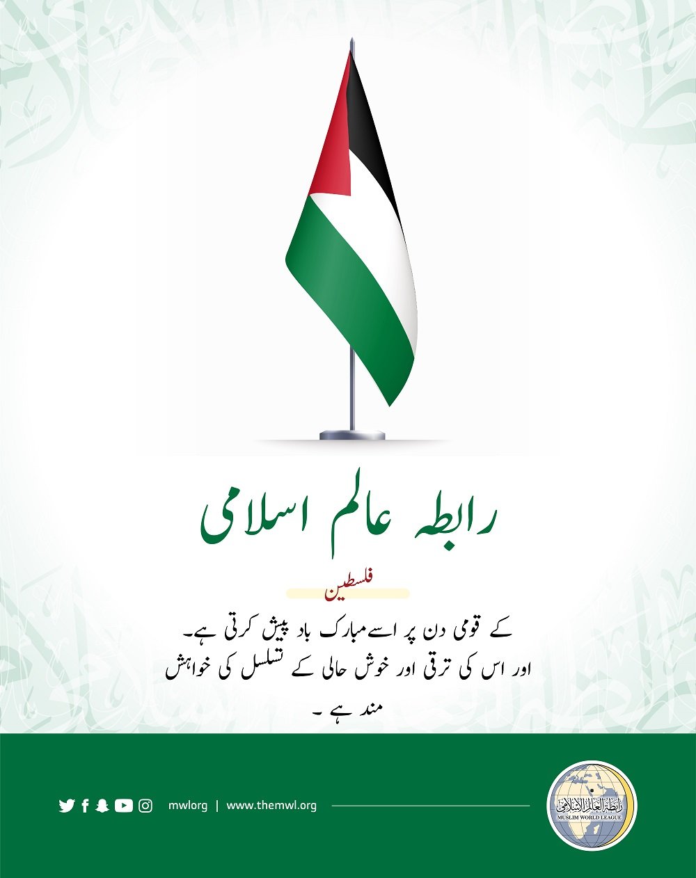 رابطہ عالم اسلامی کی طرف سے فلسطین کے قومی دن کے موقع پر فلسطينی عوام کے لئے مبارک باد کا پیغام:
