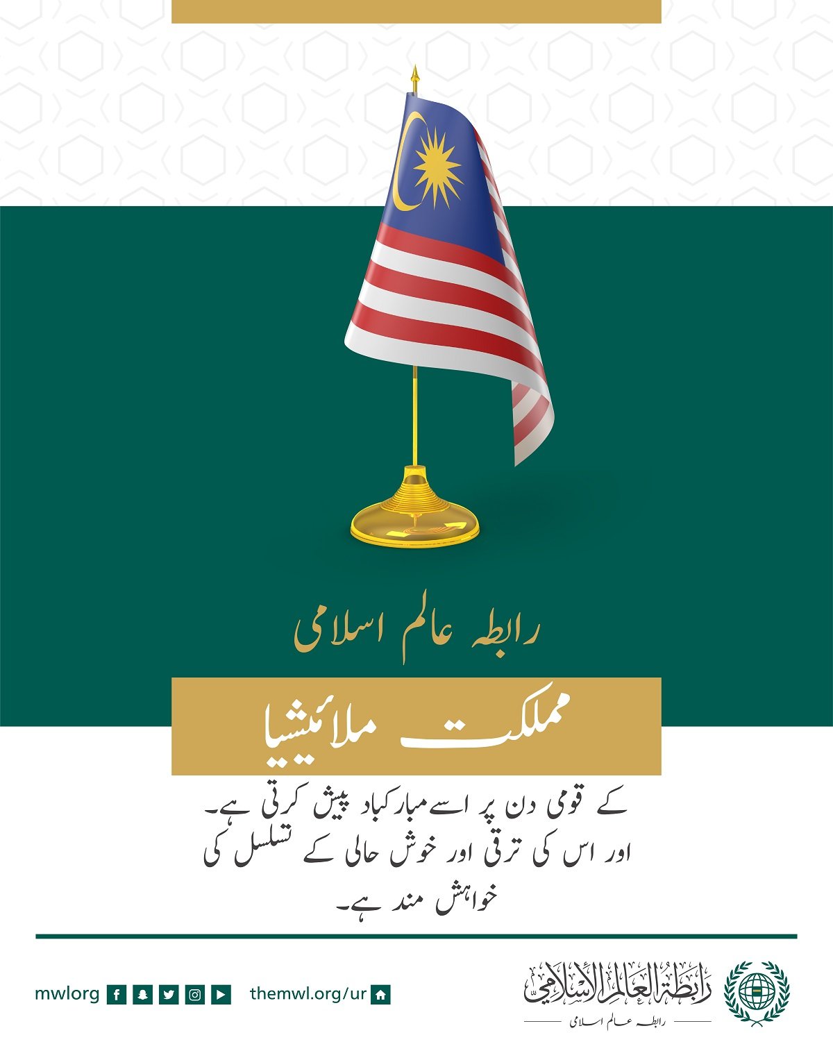 رابطہ عالم اسلامی کی طرف سے مملکت ملائیشیا کے قومی دن کے موقع پر مبارکباد کا پیغام: