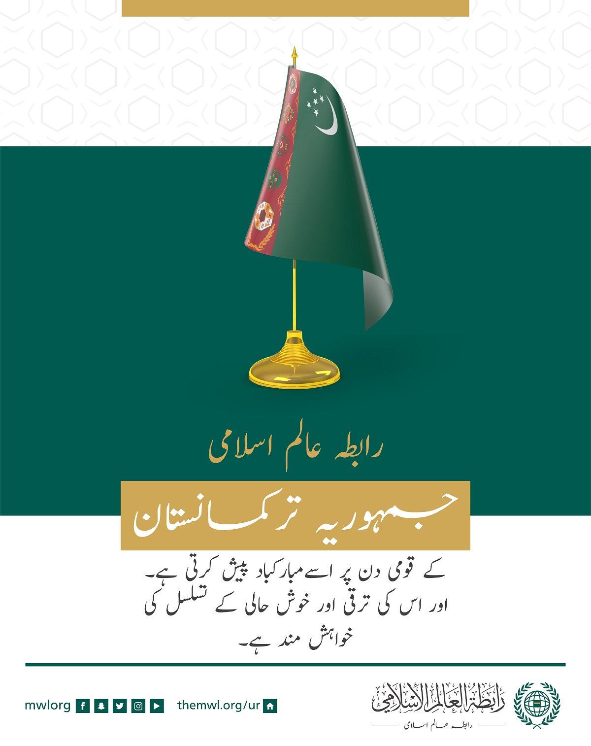 رابطہ عالم اسلامی کی طرف سے جمہوریہ ترکمانستان کے قومی دن کے موقع پر مبارکباد کا پیغام: