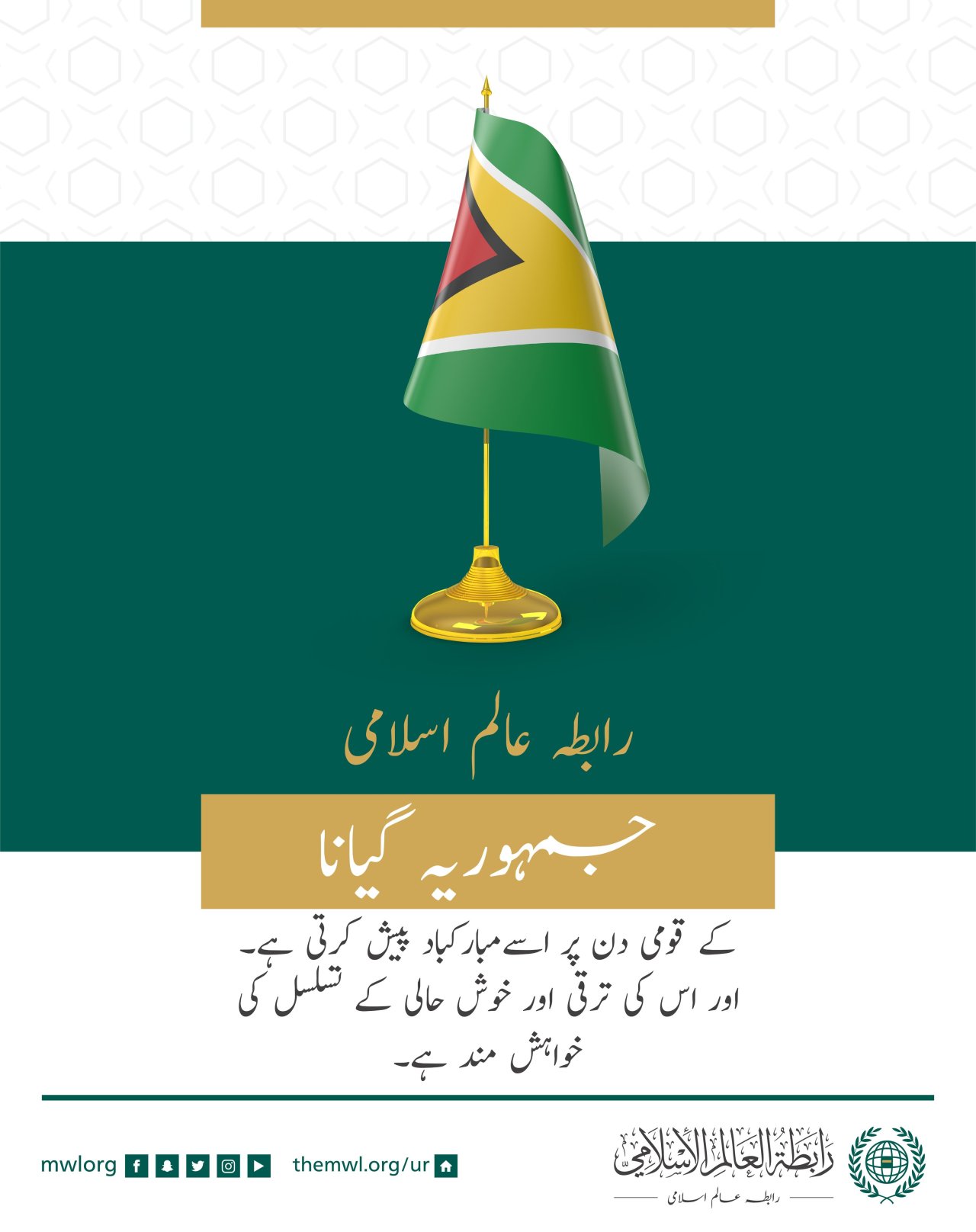 رابطہ عالم اسلامی کی جانب سے جمہوریہ گیانا کے قومی دن کے موقع پر مبارکباد کا پیغام: