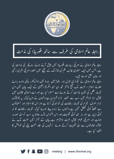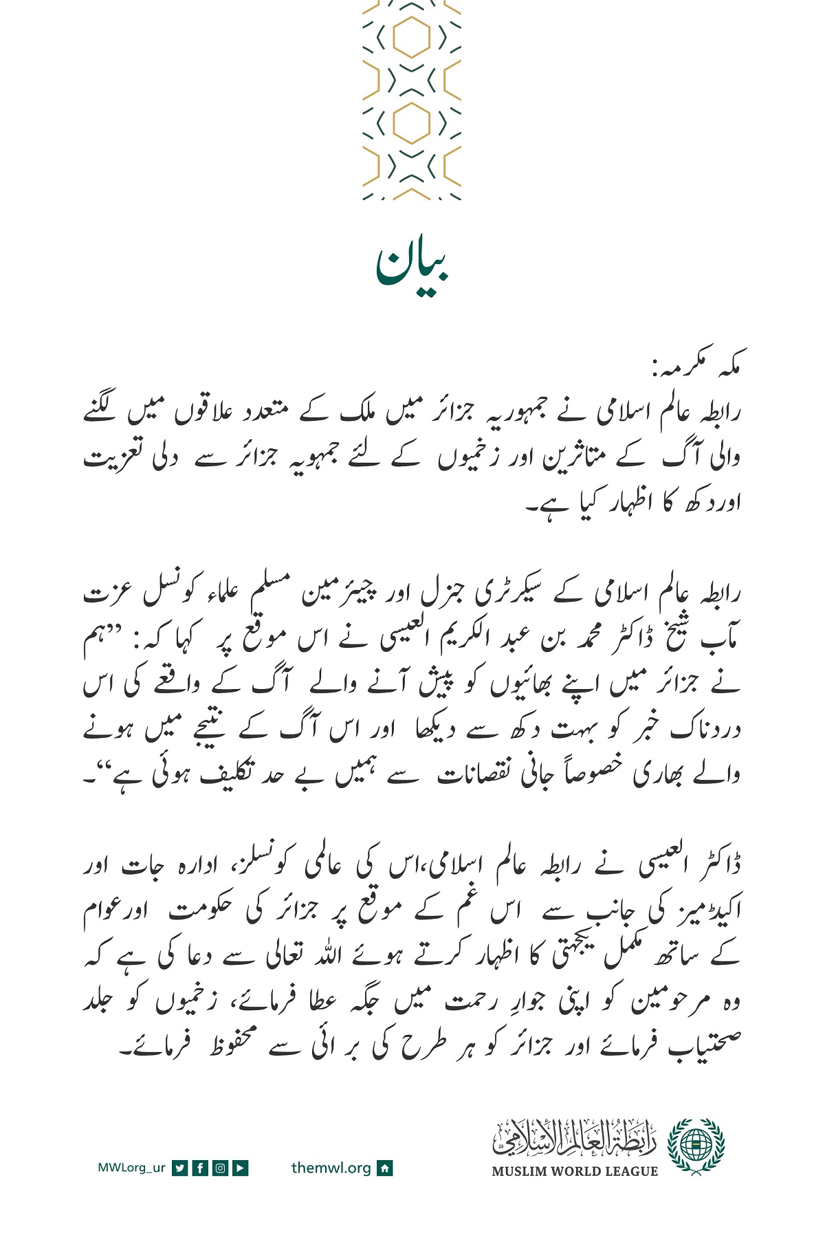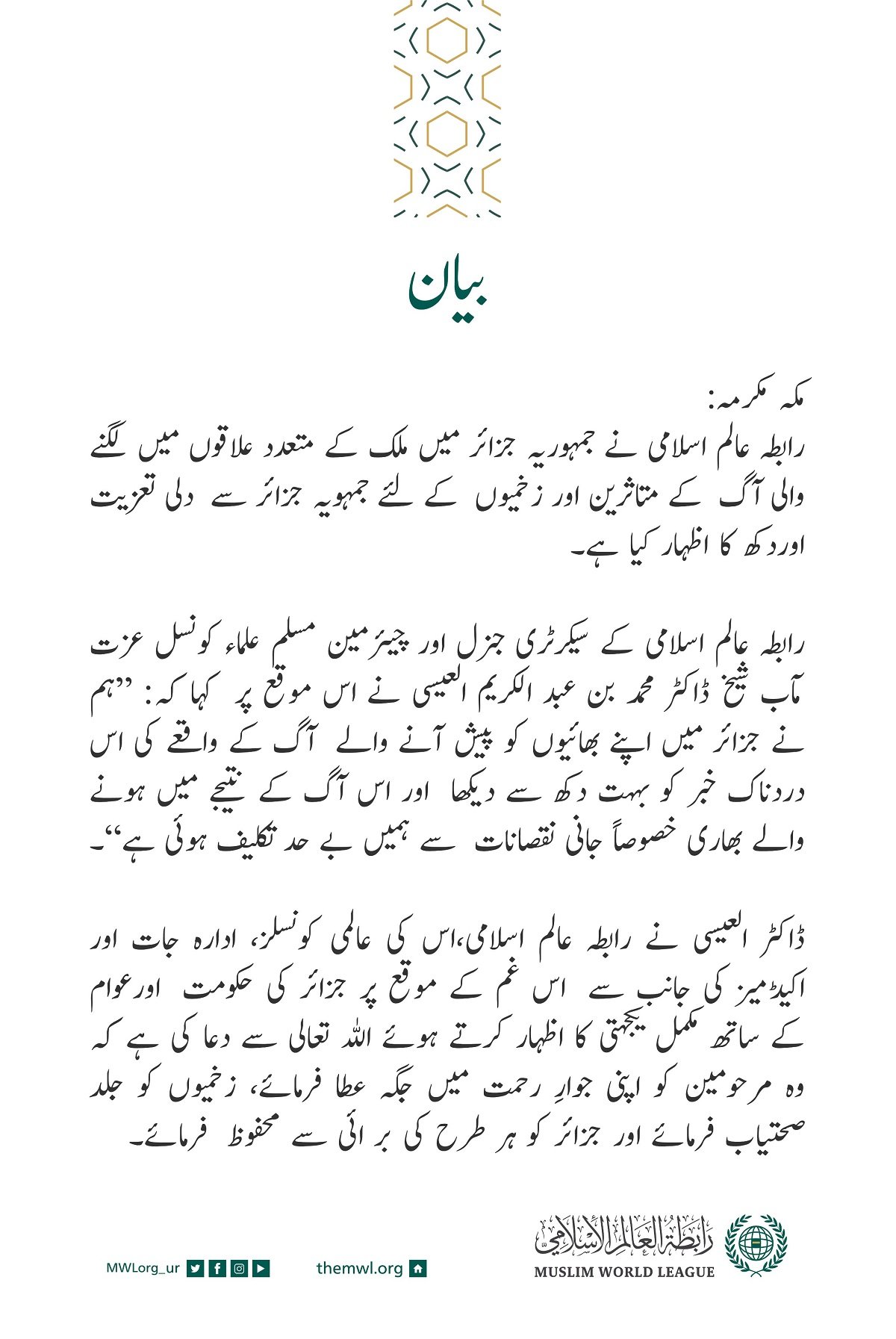 رابطہ عالم اسلامی کی جانب سے جاری بیان: