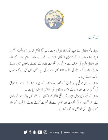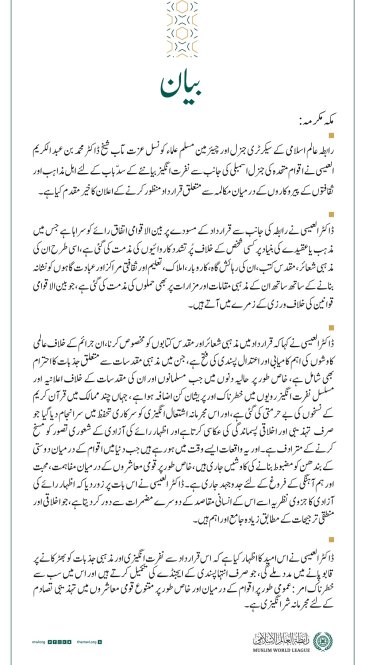 رابطہ عالم اسلامی کی جانب سے جاری بیان: