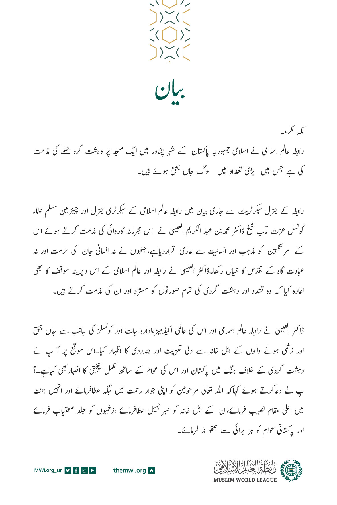 رابطہ عالم اسلامی کی جانب سے جاری بیان: