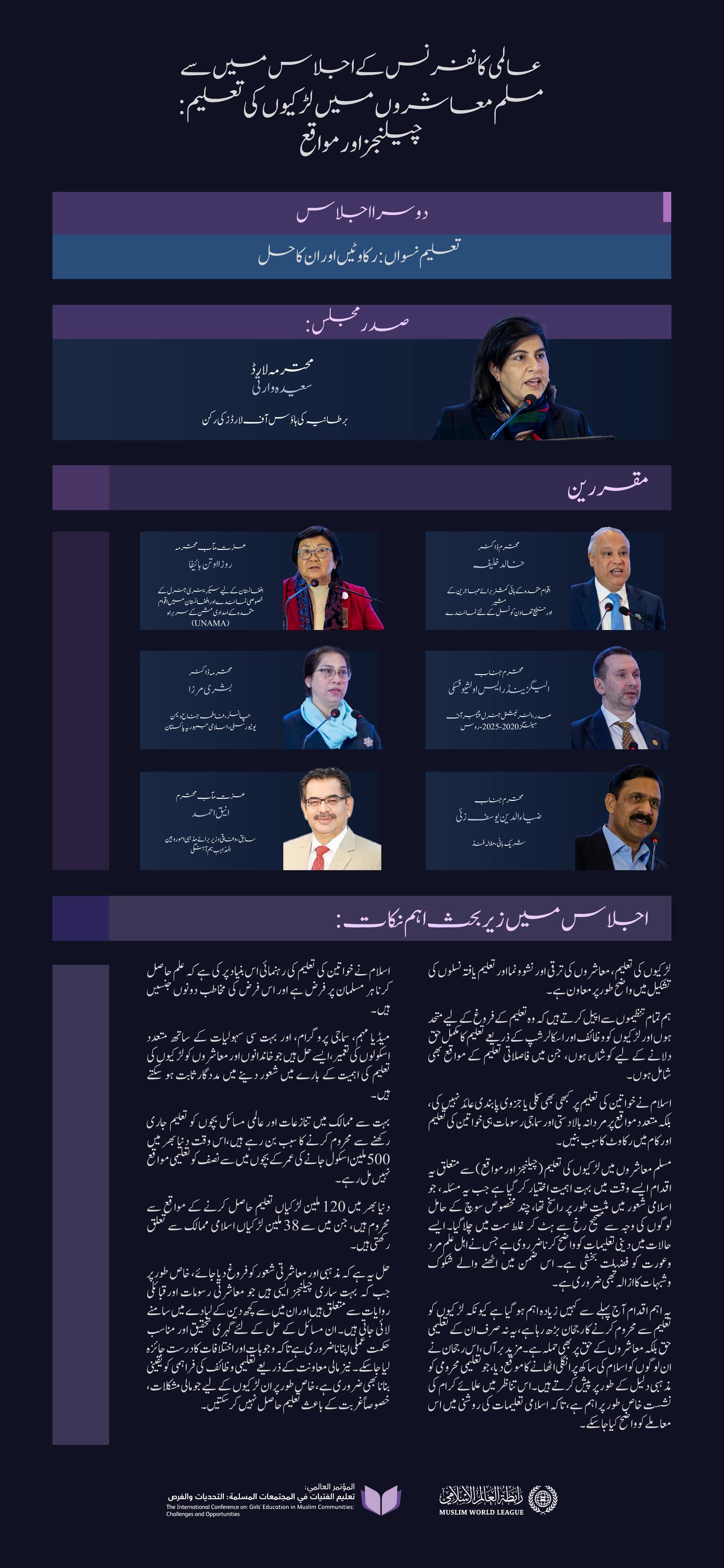 آئیے! مسلم معاشروں میں لڑکیوں کی تعلیم کے لئے اقدام کے دوسرے اجلاس میں زیر بحث اہم نکات اور نتائج پر روشنی ڈالتے ہیں: