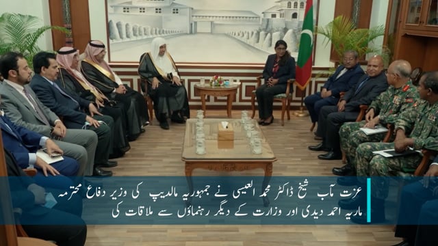 شیخ ڈاکٹر محمد العیسی کی ملاقاتوں کا منظر۔ وزیر دفاع ماریہ احمد کی سربراہی میں مالدیپ کی وزارت دفاع کے رہنماؤں کے ساتھ