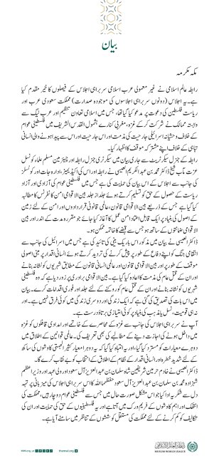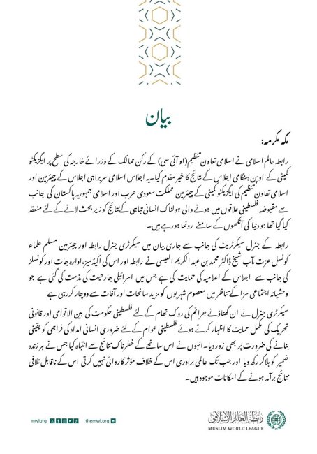 رابطہ عالم اسلامی کی جانب سے اسرائیلی خلاف ورزیوں کی مذمت اور دو ریاستی حل کے نفاذ کا مطالبہ