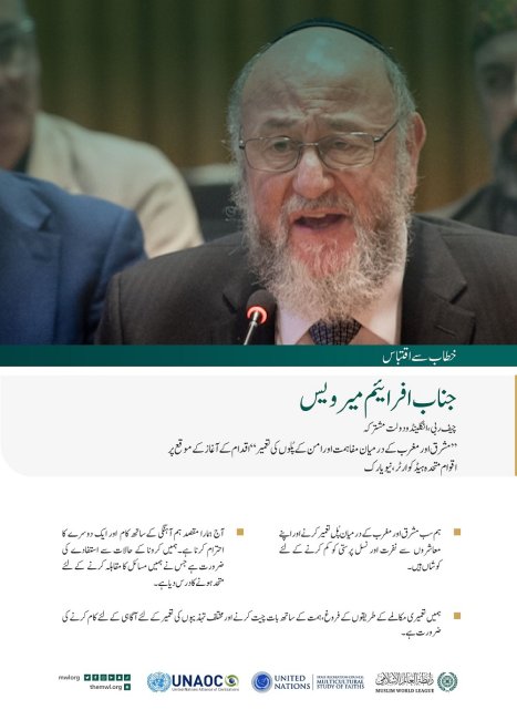 نیویارک میں اقوام متحدہ کے ہیڈ کوارٹر سے”مشرق اور مغرب کے درمیان مفاہمت اور امن کے پُلوں کی تعمیر“ کے لئے رابطہ عالم اسلامی کے اقدام کے آغاز کے موقع پر، چیف ربی انگلینڈ ودولت مشترکہ جناب افرائیم میرویس کے خطاب سے اقتباس: